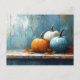 Impressionist Trio of Pumpkins on Rustic Wood Postcard