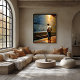 This modern impressionist artwork portrays a quiet urban moment on a railway platform. Expressive brushstrokes, warm lighting, and textured surfaces transform an architectural space into an emotional landscape of reflection and stillness. Designed as wall art for interiors inspired by impressionist style and atmospheric city scenes.