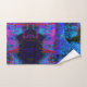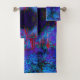Serviette de bain colorée avec un paysage de jardin bleu foncé et rouge impressionniste avec des accents rose, Magenta, Aqua, Noir et Crimson. Le résultat est un tableau coloré, abstrait, floral que vous adorerez !