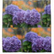 This shower curtain features an impressionistic rendition of beautiful purple hydrangeas growing by a seaside cottage in Connecticut.
