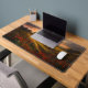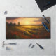 Tapis de bureau orné d'une peinture impressionniste représentant un coucher de soleil sur un terrain avec des pavots.