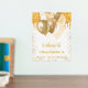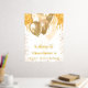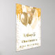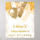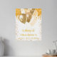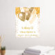 Une affiche de bienvenue pour une fête d'anniversaire de 21e anniversaire (ou de tout âge), fillette et glamour. Un arrière - plan blanc décoré de faux gouttes de parties scintillant d'or, la peinture goutte à goutte, ballons. Personnalisez et ajoutez un nom et un âge. Texte : feuille d'or réelle Retour : aucune conception