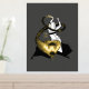 A fun fusion of ancient egyptian mythology and artistic expression. Le Bastet de Cat Goddess Bastet is depicted as bellydancer playing her her ancient instrument sistrum. As the music notes gradually diminish in size, they transform into the scales of the nefarious serpent, Apep (donc known as Apophis).