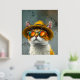 Une peinture numérique amusante et vibrante d'un chat à la mode portant un casquette de paille élégant et des lunettes de soleil réfléchissantes. Les tons oranges chauds contrastent magnifiquement avec l'arrière - plan texturé, créant un look ludique et charismatique. Cette oeuvre d'art fantaisiste est parfaite pour les amoureux de les chats et les amateurs d'illustrations exquises et exquises.