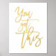Citation Motivationnelle Vous avez ce Script White Luxury Real Foil dans votre choix de l'or ou de l'argent pour la citation positive Vous avez obtenu ceci.