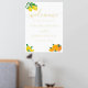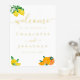 Mariage moderne citron et orange aquarelle d'agrumes accueillent affiche en feuille d'or. Unique aquarelle peinture d'oranges et de segments orange avec feuillage vert et citrons jaunes sur une branche avec des segments de verdure et de citron. Facile à customiser stylé feuille d'or script typographie avec le nom de la mariée et des mariés, la date du mariage et votre propre message de bienvenue. OEuvre originale de l'artiste Catherine Sweetman
