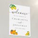 Mariage moderne citron et orange aquarelle d'agrumes accueillent affiche en feuille d'or. Unique aquarelle peinture d'oranges et de segments orange avec feuillage vert et citrons jaunes sur une branche avec des segments de verdure et de citron. Facile à customiser stylé feuille d'or script typographie avec le nom de la mariée et des mariés, la date du mariage et votre propre message de bienvenue. OEuvre originale de l'artiste Catherine Sweetman
