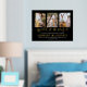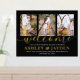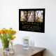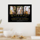 Bienvenue les invités à une douche nuptiale en couple avec un élégant collage photo personnalisé 3 photo 18"x24" imprimé noir et or. Les images et tout le libellé de ce modèle sont simples à personnaliser. (CONSEIL EN MATIÈRE DE PLACEMENT D'IMAGE : Une façon simple de centrer une photo exactement comment vous voulez est de la rogner avant de la télécharger sur le site Zazzle.) Le design moderne noir, blanc et or présente de la vraie feuille métallique, trois images de votre choix, une calligraphie de script de style manuscrit chic, et une élégante typographie vintage. Ce panneau d'accueil wedding shower en couple est une façon élégante de partager des photos de fiançailles dans le cadre de vos décorations de fête de jour. Félicitations à la mariée et au marié !
