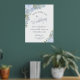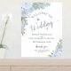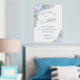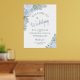 Bienvenue à votre mariage dans le style avec cette belle affiche en papier d'aluminium. Il présente un design chic boho élégant avec des roses d'aquarelle peints à la main, des fleurs et du feuillage de jardin dans des tons bleu poussiéreux et vert sauge. Le texte est écrit en calligraphie de script élégante avec de véritables accents de feuille. Il y a de l'espace pour les noms du couple ainsi qu'une courte note de remerciement et la date/l'emplacement du mariage.