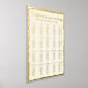 Cet élégant tableau de 20 places avec du papier d'aluminium est magnifique. Le design comporte un bord doré inégal moderne avec typographie dorée pour le numéro de table ou le nom de table personnalisable et les noms d'invités pour chacune des tables. Arrière - plan ecru personnalisable pour correspondre à votre décor mariage.