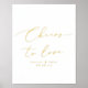 Un signe élégant pour vos boissons de bienvenue mariages ou fiançailles, avec des "cheers to love" en vrai papier moulé or de police de calligraphie moderne. Personnalisez avec vos noms et votre date de mariage.