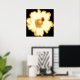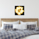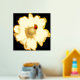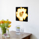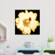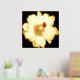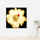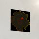 Élégant imprimé en feuille avec une grande fleur dorée, avec un coccinelle rouge et noir, contre un arrière - plan noir. Belle impression pour tous les amoureux de la nature.