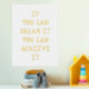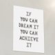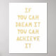 Parfait pour la chambre d'un enfant, cet imprimé d'art comporte le message inspirant "Si vous pouvez rêver, vous pouvez le réaliser" écrit dans des lettres joueuses, dessinées à la main, et imprimé en feuille d'or ou d'argent. L'arrière - plan blanc peut être laissé tel quel, ou le client peut le changer en une couleur qui correspond mieux à ses besoins.