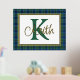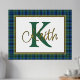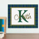 Belle impression de feuille de tartan, avec une feuille d'or encadrée dans la zone de texte, contre l'arrière - plan motif écossais Keith tartan clan. Un grand monogramme vert à lettre simple et un nom de feuille d'or sont prêts à être personnalisés.