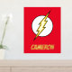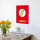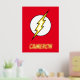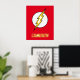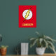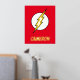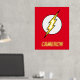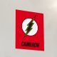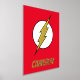 Le logo emblématique du flash Lightning Bolt, un boulon jaune qui traverse un cercle blanc sur son arrière - plan classique de couleur rouge vif.