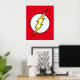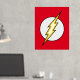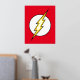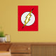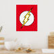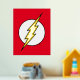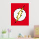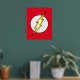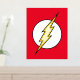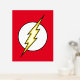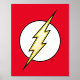 Le logo emblématique du flash Lightning Bolt, un boulon jaune qui traverse un cercle blanc sur son arrière - plan classique de couleur rouge vif.