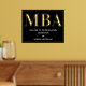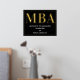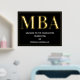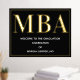 Une soirée de remise de diplômes du MBA accueille une affiche avec feuille d'or, texte blanc et un arrière - plan noir. Ajoutez simplement vos informations, ajoutez cette affiche à votre panier et célébrez cette réalisation majeure. Black Gold MBA Graduation Welcome Foil Signet affiche Conception des fêtes | ©Melissa Patton - Designer