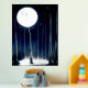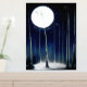 Impression de feuille élégante avec des oeuvres de la lune illuminant une forêt de bouleaux rehaussée de feuille d'argent.
