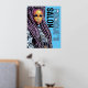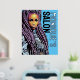 Décorez votre salon de coiffure avec cette affiche élégante en violet et bleu, avec votre nom d'entreprise en papier métallique flashy. Créé pour les spécialistes de la coiffure ethnique, le portrait artsy est composé d'une femme noire féroce et belle avec de longues tresses épaisses.