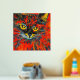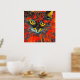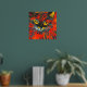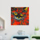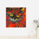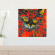 Peinture chatte abstraite unique et vibrante avec motif floral en feuille d'or sur le dessus. Le chat est coloré de rouge, d'or et d'orange. Une pièce unique pour égayer les murs de votre maison. Les Amoureux de les chats vont adorer ça.