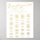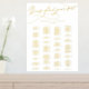 Cette affiche romantique en feuille d'or élégante est parfaite pour un mariage simple. Le panneau indique "s'il vous plaît trouvez votre siège". Ce panneau peut être utilisé pour organiser vos invités par ordre alphabétique ou par numéro de table. Le design classique moderne comprend des tourbillons fantaisistes et des fleurs fantaisistes avec une superbe typographie élégante en feuille d'or lettrée à la main. Ce poster mariage peut accueillir jusqu'à 110 personnes. Faites place à plus (ou moins) de clients en cliquant sur le bouton "personnaliser" et diminuez ou augmentez la taille de la police. En plus du placement de chaque invité, personnalisez ce panneau avec les noms de la mariée et du marié et la date du mariage.