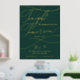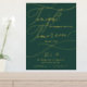 Cette feuille romantique verte et dorée demain je répète le panneau de l'affiche du dîner est parfait pour un mariage simple. Le design classique moderne comprend des tourbillons fantaisistes et des fleurs fantaisistes avec une magnifique typographie luxueuse et pressée en feuille d'or sur un arrière - plan vert émeraude foncé. Le panneau dit "ce soir, nous célébrons avec vous, demain nous disons "Je le fais".