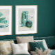 Le thème vert moody riche est présenté dans cette terre organique célébrant la peinture. Il est rempli de formes arrondies et géométriques peintes en aquarelles libres et contemporaines aux véritables accents de feuille d'or et a été créé par Audrey Jeanne Roberts, artiste et designer de renommée internationale. Vert menthe pâle, vert bleu, vert pomme jusqu'à des verts de forêt profonde avec élégante doublure dorée. Il y a quatre images qui se coordonnent dans cette collection. Droit d'auteur .