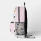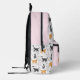 Ce sac à dos de chat à la patte est destiné aux amoureux de les chats. Ce design présente une variété de races de chats, tuxedo, tabby, orange, gris, blanc et noir et blanc avec des empreintes de pawprints roses.