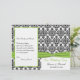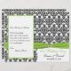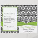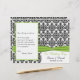 Ce programme mariage damassé en noir et blanc ou ordre de service a un ruban imprimé vert chartreuse IMPRIMÉ, ainsi qu'une boucle de bijoux en diamant IMPRIMÉE qui correspond au faire-part de mariage ci-dessous. Si vous avez besoin d'aide pour obtenir vos informations afin de les mettre en forme ou de les aligner correctement, veuillez envoyer un courriel à niteowlstudio@gmail.com. Votre document s'imprime tel qu'il apparaît sur votre écran. Il ne sera PAS édité pour les fautes de frappe ou l'alignement etc par Zazzle. ****VEUILLEZ NOTER que le papier de qualité supérieure est un stock de carte et ne se plie pas bien (fissure le design le long du pli, même si vous le pré-marquez avec un tranchant).