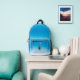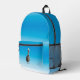 Pelican debout sur la poche arrière. Le reste de sac représente un ciel azur clair.