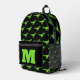 Sac à dos de dinosaure pour enfant avec monogramme personnalisé. motif en dino vert cool avec arrière - plan noir. La couleur Arrière - plan peut être modifiée. Poster de animal préhistorique sauvage. Idée cadeau d'anniversaire cool pour les garçons. Personnalisé retour à l'école fournitures pour enfants.