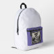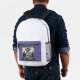 Un sac à dos blanc élégant avec un graphique de randonnée « sans signal » gras sur une poche avant contrastée, parfait pour les amateurs de plein air et pour une utilisation quotidienne décontractée.