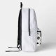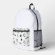Un sac à dos blanc amusant avec des modèles classiques de skateboard. Les éléments sont noirs et blancs pour un aspect élégant.