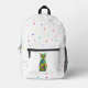 Un chat heureux avec de la fourrure arc-en-ciel est sur la poche avant. Un motif de petits pois colorés couvre le reste du sac.