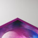 Sur fond de bleu royal et de nuages roses chauds complexes comme des galaxies lointaines, se trouve une seule orbe de verre lisse avec une fractale tourbillonnante suspendue à l'intérieur.