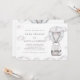 A sweet, grey-toned, watercolor invitation featuring a baby elephant in hot air balloon up above the clouds. (<a href="https://www.freepik.com/free-photos-vectors/watercolor">Watercolor vector created by azerbaijan_stockers - www.freepik.com</a>). <br/><br/>The card is easy to customize with your wording, font, font colour, paper shape options and choice of six paper types.<br/><br/>Not exactly what you're looking for? All our products can be custom designed to meet your needs at no extra charge.<br/><br/>Simply contact us at askcottonlamb@gmail.com.<br/><br/>Coordinating products available: Just ask us!"