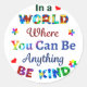 In a WORLD Where You Can Be Anything BE KIND Classic Round Sticker