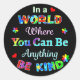In a WORLD Where You Can Be Anything BE KIND Classic Round Sticker