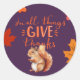 In All Things Give Thanks Autumn Squirrel Classic Round Sticker