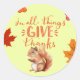 In All Things Give Thanks Autumn Squirrel Classic Round Sticker