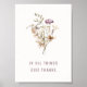 This simple poster print features a bouquet of wildflowers in beige, brown, ivory, sage green, and plum purple. Minimal styled text reads, "In all things, give thanks." Perfect for fall / autumn decor or for Thanksgiving decor!