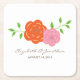 Simple and classic In Bloom Floral Wedding Paper Coasters featuring an illustration with a lovely pair of flowers in pink and orange flanked by an array of vibrant green vines. These elegant wedding coasters are perfect for a spring or summer wedding. Easy to customize, simply add your wedding details in the text fields provided. Click "Customize It" to find more personalization options.