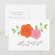 Simple and whimsical In Bloom Floral Wedding RSVP Postcard featuring an illustration with a lovely pair of flowers in pink and orange flanked by an array of vibrant green vines. This elegant wedding response postcard is perfect for a spring or summer wedding. Easy to customize, simply add your wedding details in the text fields provided. Click "Customize It" to find more personalization options.