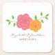Simple and classic In Bloom Floral Wedding Paper Coasters featuring an illustration with a lovely pair of flowers in red and orange flanked by an array of vibrant green vines. These elegant wedding coasters are perfect for a spring or summer wedding. Easy to customize, simply add your wedding details in the text fields provided. Click "Customize It" to find more personalization options.