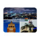 Here you will find the souvenir of your vacation. This category contains fridge magnets of many locations. This image contains a representation of the following places: Mumbai Bombay India - The temple of Goddess Mumba - Rajabai Clock Tower - Mumbai city at night . Impress friends and family with unique souvenirs from the big trip! Try us!