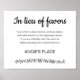 These charming "in lieu of favours" poster is a wonderful way to let your guests know you've made a donation to your favourite charity in honour of them on your wedding day.