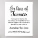 In Lieu Of Favours Wedding Sign -Rochester