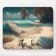 Turquoise water and palm trees on a white sandy beach art. Quote: "In love with the sea."