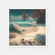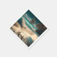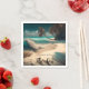 Ocean themed paper napkins. Turquoise water and palm trees on a white sandy beach art. Quote: "In love with the sea."