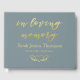 NewParkLane - Elegant, personalized memorial service book of condolence in grayish blue, with quote 'In loving memory' in faux gold, brush script typography, with a gold winged heart.